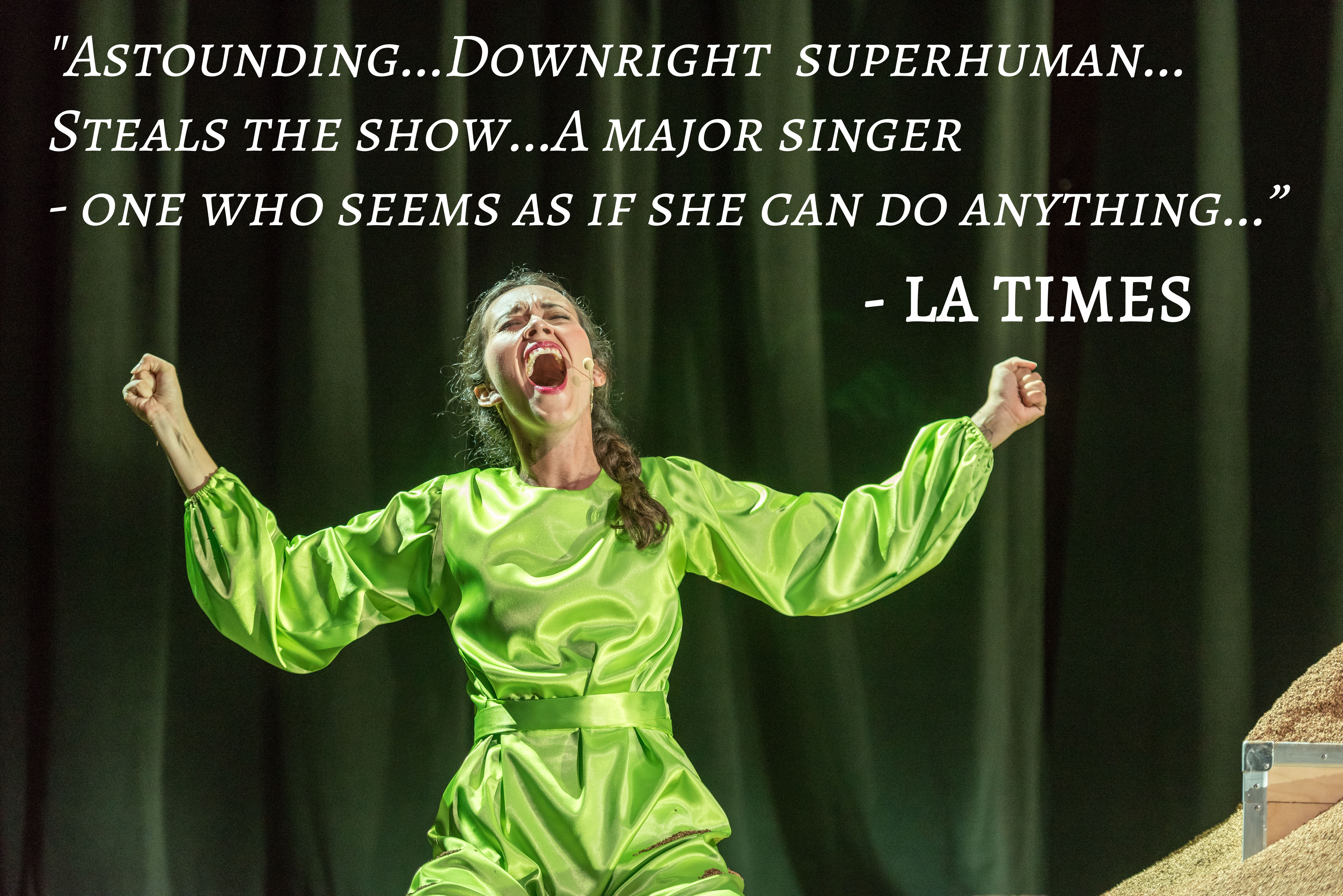 "Laurel Irene...was downright superhuman, giving one of the most astonishing performances, vocally and interpretively, I have ever encountered. Although she has only a couple of lines to sing, she found a seeming infinite ways to be resigned, compassionate, forbearing, affectionate, sympathetic, absolving, loving or just sick and tired of the whole thing. Just as remarkable is how beautiful and pure her tone remained, over and over and over again." - Mark Swed, LA TIMES